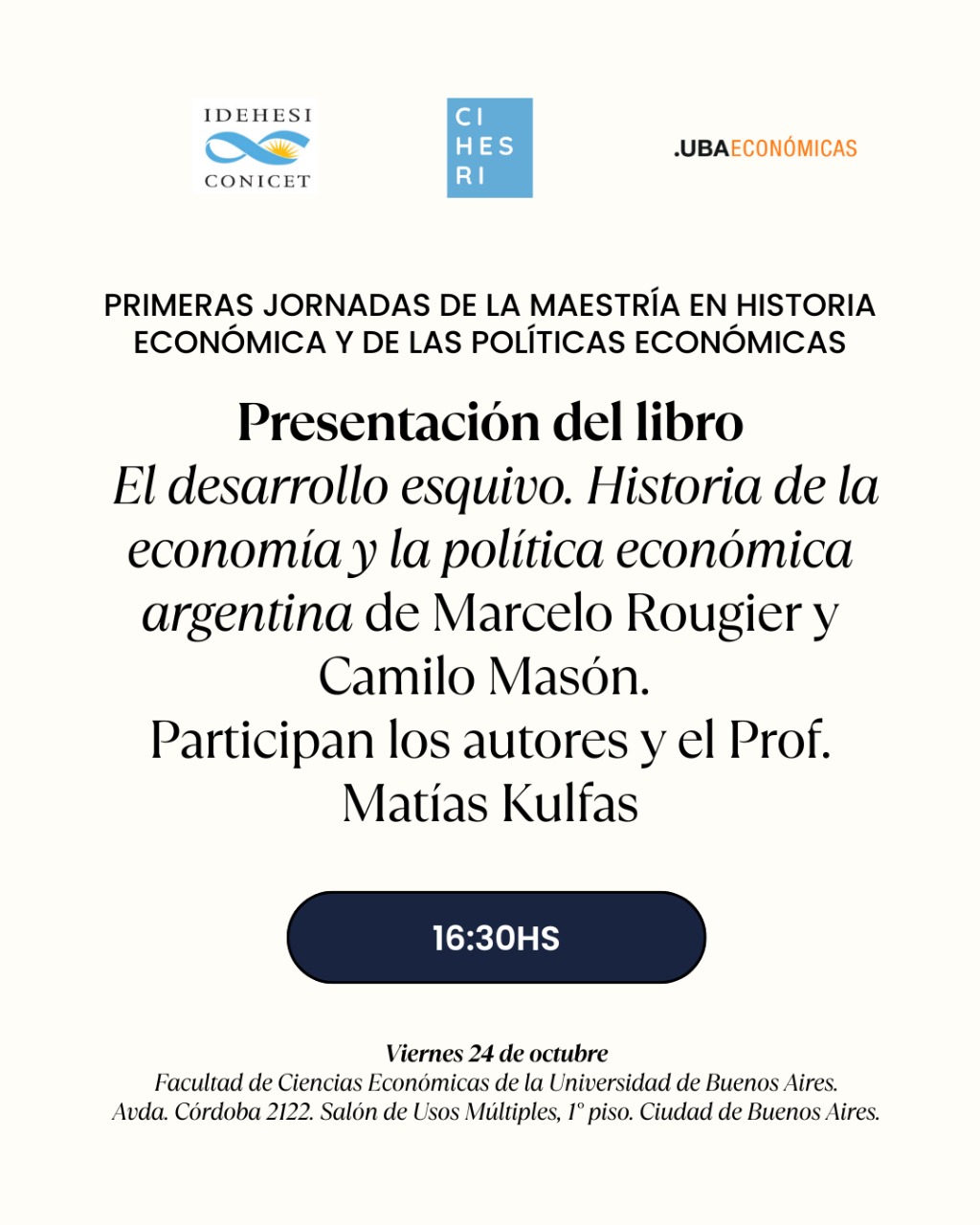 Presentación del libro El desarrollo esquivo. Historia de la economía y la política económica argentina, de Marcelo Rougier y Camilo Masón. Ingresar aquí