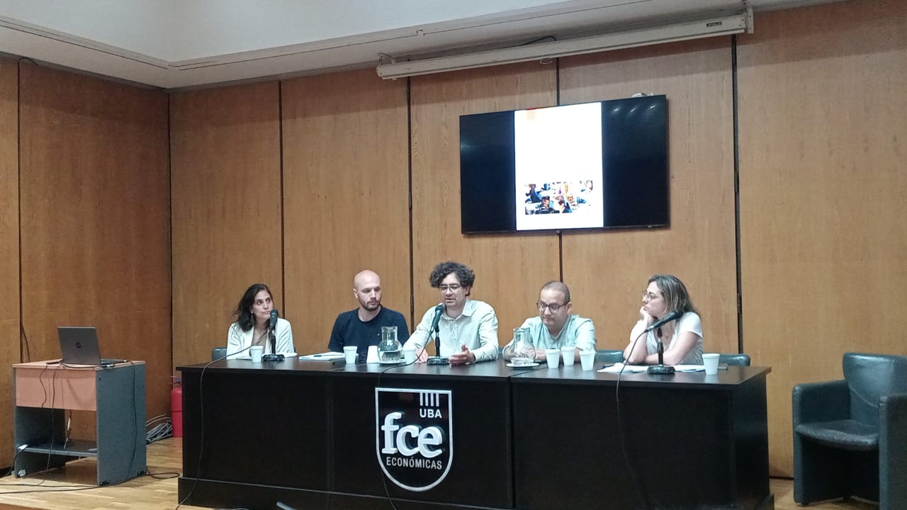 Presentación del Informe Bimensual de Ciclos en la Argentina y el Mundo. Presentan becarios/as de grado de la Facultad de Ciencias Sociales y Ciencias Económicas de la UBA, que participan del CIHESRI. Laureano Cónsoli, Bianca Roldán, Augusto Di Giacomo, Juan Ignacio Latorre, Damaris Kulemeyer y Ana Vázquez