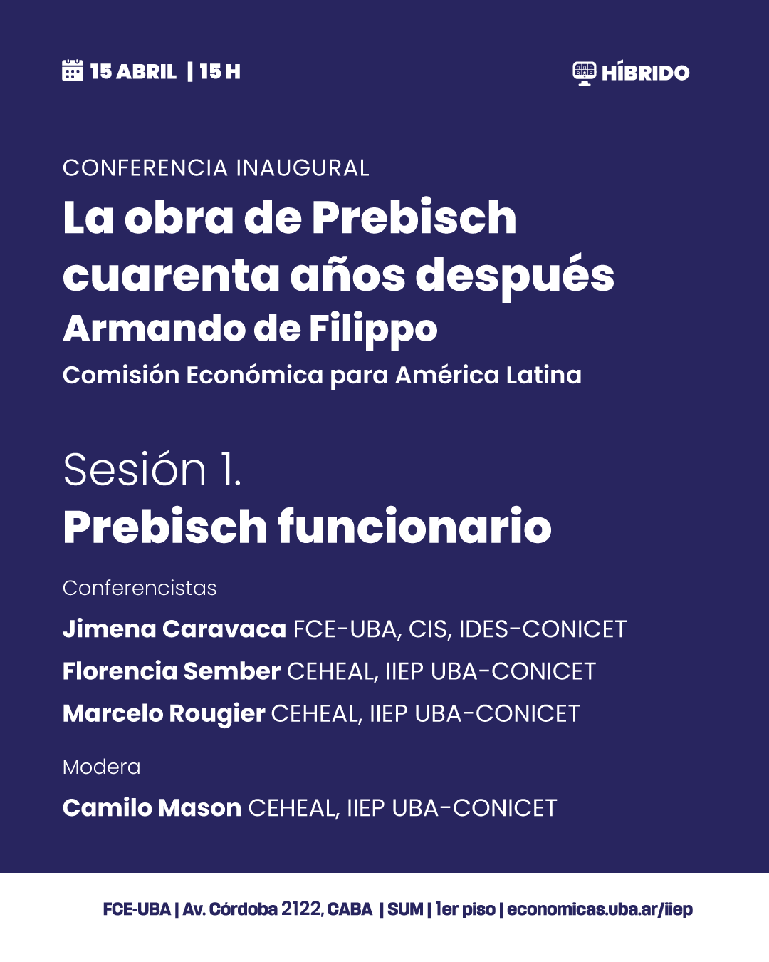 Este ciclo de conferencias rinde homenaje a la trayectoria intelectual y al legado teórico de Prebisch a través de tres sesiones dedicadas a explorar su rol como funcionario, como teórico y como docente. A lo largo de las jornadas, se revisitarán sus contribuciones al pensamiento económico latinoamericano, su visión sobre el desarrollo, la estructura productiva y el sistema centro-periferia.